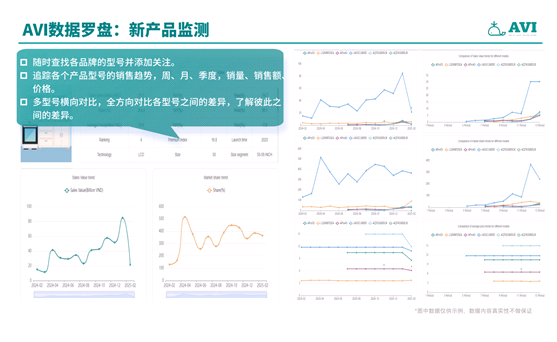 AVI數據羅盤不僅能分析單一時點的數據,還能追蹤各產品型號的銷售趨勢,涵蓋周、月、季度的銷量、銷售額及價格變化。這種長期的數據追蹤為企業提供了寶貴的歷史參考,幫助其制定更為科學的市場策略。