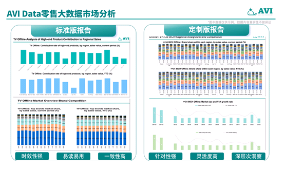 除了AVI數據羅盤,AVI Data還提供了多種其他重要產品和服務,進一步豐富了其產品服務體系,為企業出海提供了全方位的支持。其中,零售數據報告是核心產品之一,分別滿足了企業在時效性和針對性上的不同需求。報告類型依據需求分為標準版和定制版,標準版報告側重于時效性強、易讀易用的特點,適合需要快速獲取市場信息的企業。這些報告基于最新的市場數據,經過專業團隊的精心整理和分析,確保內容的一致性和可靠性。