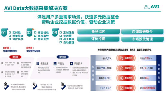 此外,為了進一步提升企業的數據分析能力,AVI Data還推出了大數據采集解決方案,幫助企業在復雜的市場環境中快速整合和利用多元數據資源。該方案不僅滿足了用戶在多重需求場景下的數據需求,還通過快速多源數據整合,助力企業挖掘數據價值,驅動決策。