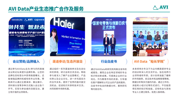展望未來,隨著AI技術和大數據分析的不斷發展,AVI Data將繼續深化其技術優勢,推出更多創新產品和服務。例如,通過強化其在自然語言處理和機器學習領域的研究,AVI Data有望進一步提升數據分析的智能化水平,幫助企業更快捷、更準確地獲取市場信息。此外,AVI Data還將繼續與各個生態伙伴深度合作,促進產業內的知識共享和技術交流,增強企業的合作網絡和品牌影響力。這些努力也將進一步鞏固AVI Data在全球市場中的領先地位,為中國家電企業的國際化進程保駕護航。