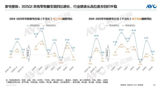 家電整體:2025Q1雙線零售額實現同比增長,行業增速從高位逐步回歸平穩