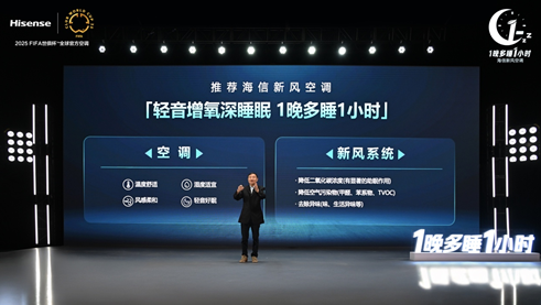 針對困擾消費者的睡眠困擾問題,海信中國區營銷總部馮濤在發布會上提出睡眠空氣質量終極解決方案。他指出,海信新風空調能通過微正壓置換方式凈化室內空氣、平衡室內水汽,結合靜音防直吹功能,構建起覆蓋空氣潔凈度、溫濕舒適度及體感舒適度的立體化睡眠保障體系。