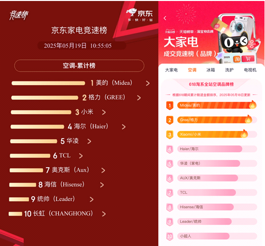 在國家以舊換新政策補貼賦能下,美的空調在2025年 618大促預熱期間強勢出擊,持續領跑京東、天貓等主流平臺銷售榜首,穩固空調領域領先地位。今年618剛好遇上520.在這個充滿愛意的日子里,除了鮮花與巧克力,更需要用“溫度”傳遞真心,,美的酷省電空調、美的鮮凈感空氣機T6、美的空調無風感系列、全面風系列等多款創新產品成為市場熱門選擇,驅動銷售增長。