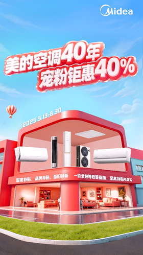 美的空調40年X520.寵粉鉅惠40%,618大促福利升級 值此美的空調40周年之際,為感恩回饋廣大消費者40年來的支持與厚愛,本次618大促特別推出“美的空調40年,寵粉鉅惠40%”活動。5月13日至6月30日期間,消費者通過主流電商平臺搜索"美的空調"進入品牌官方旗艦店選購產品,可享超值折扣、現金補貼、大促驚喜券至高可減500元等,更有換新補貼、0 元安裝服務、整機超長包修等多重福利,多平臺優惠政策疊加至高40%,讓消費者能以更實惠的價格購入美的空調。