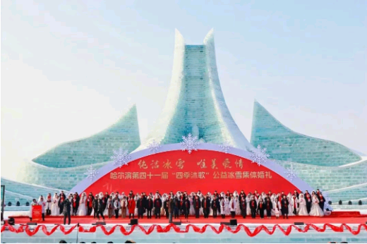 與此同時,四季沐歌攜手共青團哈爾濱市委宣傳部、青年宮、市文廣旅游局、市民政局、市衛健委、哈爾濱廣播電視臺、哈爾濱日報社、馬迭爾文旅投資集團等單位共同舉辦的“公益冰雪集體婚禮”成為全網現象級傳播事件。百對新人乘坐“愛情巴士”穿越中央大街、索菲亞教堂,打卡太陽島、伏爾加莊園,在冰雪大世界完成低碳婚禮儀式,四季沐歌發起話題#爾濱冰雪婚禮也太浪漫了#四季沐歌空氣能爾濱冰雪婚禮 登頂微博熱搜,全網曝光超6億次;顒硬粌H以冰雪為媒傳遞簡約婚戀新風尚,更通過跨界聯動中國勁酒、洽洽等百家國內外知名品牌,開創“低碳營銷+社會公益”的藍V協同傳播新范式。