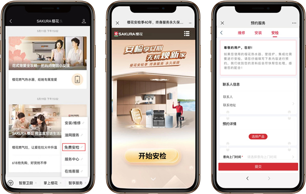 指尖輕觸的便捷:登錄SAKURA櫻花官網或微信公眾號,一鍵預約,省時省心。