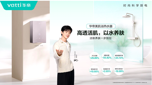 華帝“高透活肌科技”正是通過改變水分子團(H2O)n的結構及活性,賦予了沐浴水全新的特性,從而實現對肌膚的深層清潔、補水、抗皺提亮。28天真人專業測試結果顯示,連續使用華帝美肌浴熱水器30天后,受試者面部水分含量提升29.89%,油脂含量降低55.82%,緊致度提升24.14%,彈性提高10.6%,亮度提升2.65%,皺紋長度減少19.99%。