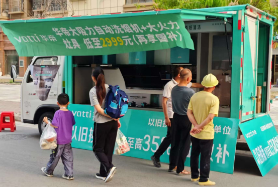 4月起,華帝小區推廣車項目進一步拓展落地版圖,掀起場景化營銷熱潮,贏得社區業主廣泛認可。當搭載“華帝綠”涂裝的推廣車駛入太原某社區時,即刻引發業主圍觀——車廂內不僅展示了華帝最新款的廚電產品,如具有強大吸力的煙機、精準控溫的燃氣灶具及熱水器等,還配備了專業的銷售人員和技術人員提供講解與咨詢,打造零距離的產品體驗。