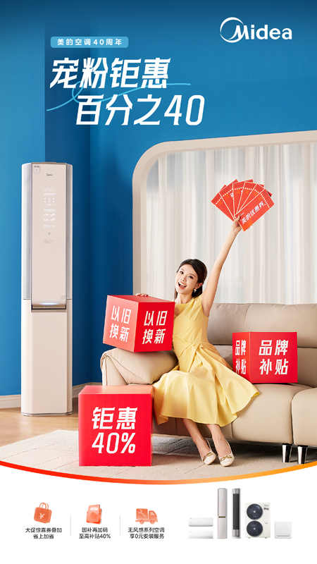 美的空調(diào)積極響應(yīng)政策,推出“國(guó)家補(bǔ)貼+品牌補(bǔ)貼+以舊換新”三重補(bǔ)貼體系,降低消費(fèi)者換新成本。“寵粉鉅惠40%”活動(dòng)成為最大亮點(diǎn),購(gòu)買美的無風(fēng)感系列空調(diào)的用戶,還能享受“無風(fēng)感空調(diào)一價(jià)全包”服務(wù)承諾,涵蓋高空作業(yè)費(fèi)、打孔、支架、銅管、空氣開關(guān)、遠(yuǎn)程費(fèi)等多項(xiàng)費(fèi)用全免,安裝后365天內(nèi)只換不修、免費(fèi)充氟、免費(fèi)移機(jī)、免費(fèi)清洗濾網(wǎng)等服務(wù),最高可省1599元,真正實(shí)現(xiàn)透明消費(fèi),讓消費(fèi)者買得放心、用得舒心。在行業(yè)競(jìng)爭(zhēng)激烈的環(huán)境下,美的借助政策東風(fēng),通過創(chuàng)新促銷政策,在旺季搶占市場(chǎng)份額。