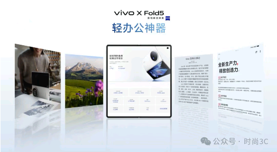 值得一提的是,vivo X Fold5的大屏生產力也再一次實現了飛躍。全新大屏多任務交互的原子工作臺、全面深入的跨生態能力、行業領先的大屏AI能力等功能組合,大幅提升辦公效率,成為年輕人的新一代「輕辦公神器」。