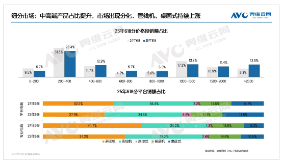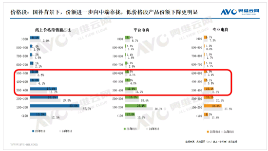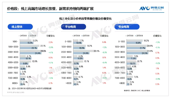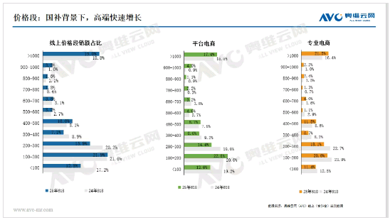 價格段:線上高端市場增長放緩,新需求持續向兩端擴展