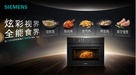 面對快節(jié)奏、多樣化的現代飲食場景,西門子iQ500智魔方炫彩款蒸烤一體機以五合一烹飪系統(tǒng),有效整合了傳統(tǒng)與現代的多樣料理方式。無論是鮮嫩鎖味的亞沸鎖鮮蒸、均勻上色的3D熱風烤,還是酥脆健康的減脂空氣炸、脫骨不爛的過溫養(yǎng)生燉,抑或精準控溫,保證營養(yǎng)不流失的真空恒溫煮,只要一臺產品就能輕松勝任。