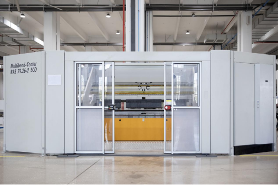 在森歌不銹鋼生產車間,配備了德國通快數控沖床實現全自動化操作,排料、進給、沖壓三道工序一次完成,精度可達0.005MM,快速、高精度、高質量;跑車級RAS柔性折彎中心(全球僅10臺)一體成型,甚至還能定制異形刀模;芬蘭仕丹數控折彎機能一次制作出長達2.8M的圓弧形門板造型,無刀痕更美觀。