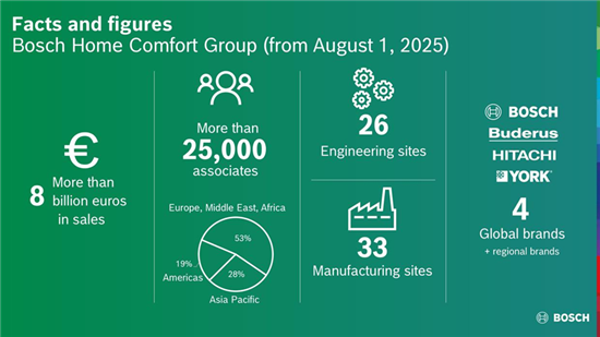 收購完成后,博世舒適科技將成為全球住宅及輕型商業建筑供暖、通風與制冷市場的主要供應商之一,其全球生產基地將從17個增至33個,研發中心數量也將從14個增至26個。整合工作現已正式啟動,預計將在2027年底前完成。
