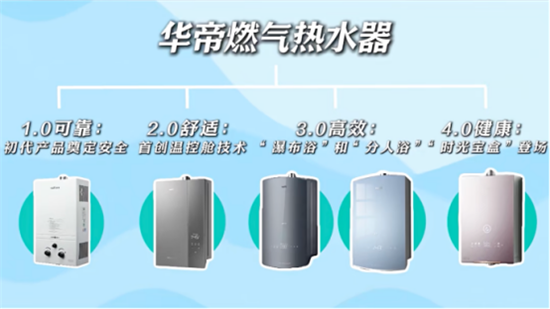 40余年發展歷程中,中國熱水器行業經歷了用戶需求的四次升級:1.0時代求安全,2.0時代講恒溫,3.0時代重高效,4.0時代則進入健康護膚。這個過程中,華帝始終積極通過技術創新,引領行業升級,例如2002年研發下置風機技術,提高燃氣熱水器的安全性能。2015年首創溫控艙技術,攻克啟停恒溫難題;2021年推出了健康分人浴,開啟個性化時代。