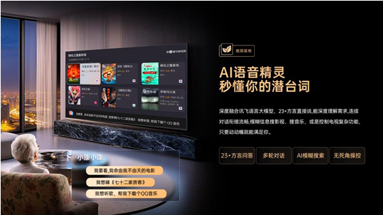 健康守護(hù)方面,康佳易AI電視G10系列新品也下足了功夫,AI智享影音調(diào)控、自研驚鴻AI畫質(zhì)芯片等技術(shù),為老年用戶觀影筑起了一道堅(jiān)實(shí)的健康屏障。