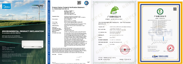 早在2022年,美的空調就率先發布了行業首個空調產品碳足跡+減碳量評估報告,全球首個空調環境產品聲明(Environmental Product Declaration,EPD)。截至目前,美的空調已有5個品類、50余款重點機型獲得權威第三方機構頒發的產品碳足跡證書。