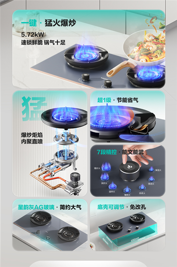 對(duì)熱愛烹飪的中式家庭而言,“鍋氣”至關(guān)重要。8S60搭載炬焰穩(wěn)燃系統(tǒng),多維增氧實(shí)現(xiàn)充分燃燒;右側(cè)灶還可以一鍵爆炒,瞬間迸發(fā)出強(qiáng)勁火力幫助食材快速斷生;而其左側(cè)灶7段精調(diào)控火,無論是精致小料理還是大家庭盛宴,都能精準(zhǔn)應(yīng)對(duì)。