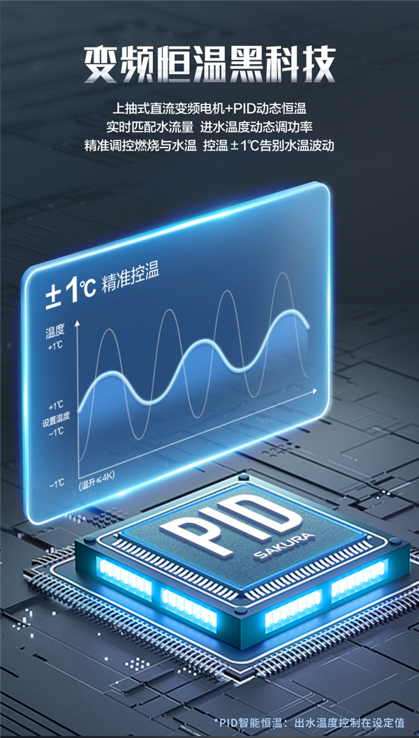 水溫忽冷忽熱是家庭用水的共性痛點,比如沐浴時的驟變讓人不適,洗漱時的波動可能刺激肌膚,廚房用水時的溫差更會影響操作體驗。櫻花這款燃氣熱水器的“上抽式直流變頻電機+PID動態恒溫算法”組合,正是解決這一問題的關鍵。