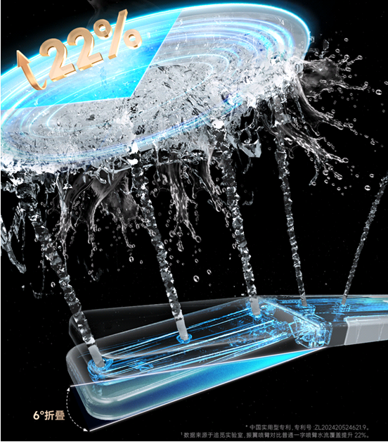 這項技術的精妙之處在于,其噴臂兩端能夠進行+2°至-4°的智能柔性形變。這如同為洗碗機裝上了一雙“智能觸手”,可主動探尋并深入餐具的縫隙與邊緣,實現對傳統噴淋盲區的精準覆蓋,使得洗碗機的洗滌覆蓋面積提升了22%,確保無論是碗盤深處還是鍋具邊緣,都能被強勁水流充分包裹,實現全域無死角的潔凈效果。