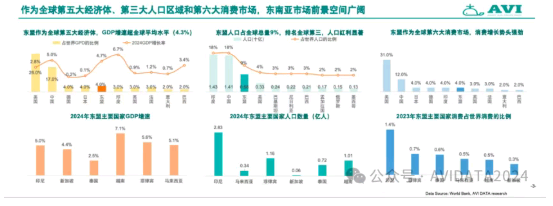 文建平援引AVI DATA和權(quán)威公開研究數(shù)據(jù)指出,東盟作為全球第五大經(jīng)濟(jì)體,2024年GDP增速達(dá)到4.3%,持續(xù)領(lǐng)先全球平均水平。該區(qū)域人口總數(shù)位列全球第三,占世界總?cè)丝诘?%,人口紅利依然顯著。