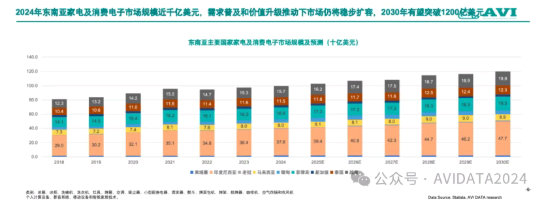 根據(jù)相關(guān)數(shù)據(jù)顯示,2024年東南亞家電及消費(fèi)電子市場規(guī)模已接近1000億美元。在需求普及與價(jià)值升級(jí)的雙輪驅(qū)動(dòng)下,預(yù)計(jì)到2030年,該市場規(guī)模將突破1200億美元。