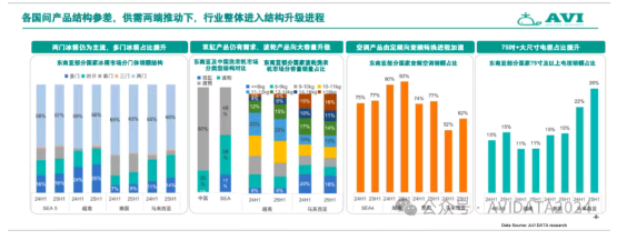 盡管東南亞市場整體處于普及階段,但內(nèi)部差異顯著,結(jié)構(gòu)升級(jí)已成為主線。文建平通過詳實(shí)數(shù)據(jù)指出,在空調(diào)領(lǐng)域,東南亞部分國家的變頻空調(diào)銷額占比正快速提升,定頻向變頻轉(zhuǎn)換的進(jìn)程明顯加速。冰箱市場上,兩門產(chǎn)品雖仍為主流,但多門冰箱的份額持續(xù)增長。電視方面,75吋及以上大尺寸產(chǎn)品在部分國家的銷售額占比已突破兩位數(shù),趨勢顯著。洗衣機(jī)市場則呈現(xiàn)獨(dú)特格局:雙缸產(chǎn)品在部分國家仍有需求,但波輪洗衣機(jī)正向著10公斤及以上大容量方向升級(jí)。