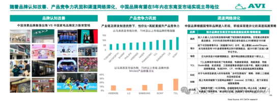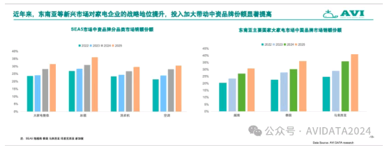 近年來,隨著中國企業(yè)戰(zhàn)略資源傾斜與投入加大,中資品牌在東南亞市場份額顯著提升。AVI DATA數(shù)據(jù)顯示,在越南、泰國、馬來西亞、印度尼西亞、新加坡這五個(gè)重點(diǎn)市場(SEA5),中國品牌多個(gè)品類銷售額份額持續(xù)增長。大家電市場中國品牌份額已形成不可忽視的力量。