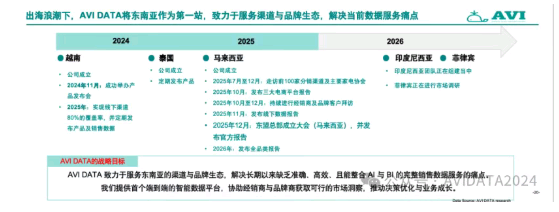 AVI DATA以“高準(zhǔn)確度、高效率、AI+大數(shù)據(jù)智能驅(qū)動(dòng)、端到端整合”為核心標(biāo)準(zhǔn),致力于成為面向全球消費(fèi)電子、家電和快消品行業(yè)的一站式、智能化大數(shù)據(jù)服務(wù)商。公司成立以來進(jìn)展迅速:2024年11月產(chǎn)品成功發(fā)布;2025年計(jì)劃實(shí)現(xiàn)線下渠道80%的覆蓋率,并于10月發(fā)布三大電商平臺(tái)報(bào)告,11月發(fā)布線下數(shù)據(jù)報(bào)告,12月在馬來西亞舉行東盟總部成立大會(huì)并發(fā)布官方報(bào)告;2026年將進(jìn)一步發(fā)布全品類報(bào)告。目前,印度尼西亞團(tuán)隊(duì)正在組建,菲律賓市場調(diào)研也已啟動(dòng)。