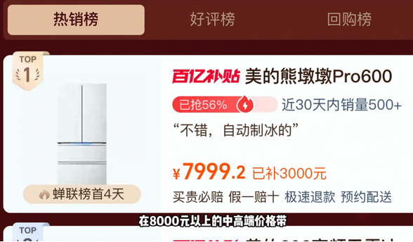 業內人士表示,美的冰箱單品實力霸榜銷量第一的背后,展現出了美的始終堅持以用戶需求為核心的創新產品邏輯,美的熊墩墩系列冰箱憑借技術創新和個性化定制,精準滿足多元用戶需求,助力消費者從“基礎剛需”向“品質體驗”躍遷升級,不僅贏得了廣大消費者高度認可,更進一步夯實行業龍頭地位,有望持續領跑雙11冰箱市場。