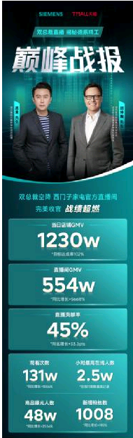 與此同時,天貓直播間的氛圍也格外熱烈。觀眾在評論區積極互動,紛紛留言“看懂了技術,也更信任西門子家電”。直播期間累計觀看次數達到131萬,小時最高在線人數峰值突破2.5萬,商品曝光人數48萬+,并成功登頂天貓大家電成交榜日榜和總裁時段實時帶貨榜!