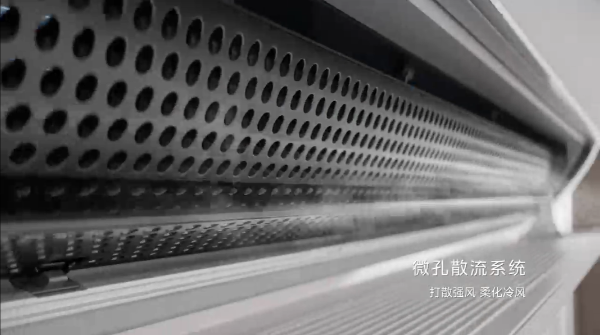 一方面,美的升級(jí)了壓縮機(jī)、風(fēng)輪和風(fēng)道,從源頭帶來強(qiáng)勁風(fēng)量,并讓更多冷量通過微孔擴(kuò)散,讓房間實(shí)現(xiàn)快速降溫;另一方面,則在主風(fēng)口處設(shè)計(jì)了多層次的細(xì)密微孔陣列來分流,打散柔化強(qiáng)勁冷風(fēng),使風(fēng)速保持在0.3m/s輕柔的體表風(fēng)速,再配合高精度濕度傳感器和溫濕度智控算法,這才解決了冷風(fēng)直吹帶來的不適感,也有效防止了冷風(fēng)刺激引發(fā)的鼻炎、感冒等問題。