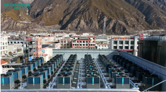 在海拔3400米的西藏林芝工布江達縣,四季沐歌也打造了西藏單體最大的空氣能熱泵集中供暖項目,覆蓋學校、醫院、政府辦公樓等十余個公共建筑,總供暖面積超29萬㎡。高寒、低壓、強紫外線、晝夜溫差大——這些對常規熱泵系統堪稱“致命”的環境因素,在這里被逐一化解。項目的成功運行,也讓高原群眾在藍天白云下享受到了清潔、穩定的溫暖。