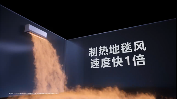 那么,美的究竟如何將“制熱強”這一核心賣點,轉化為用戶可感知的極致體驗?首先,在“暖得快”的維度上,產品通過硬件重構實現高效制熱與均勻控溫。它搭載行業最大的970cm²雙風口設計,配合820m³/h超大循環風量,開機即可輸出強勁氣流,制熱速度較普通空調提升一倍,能迅速驅散室內寒冷;配合左右超115°超廣角送風,氣流輕松覆蓋房間角落,全屋溫差≤1℃,徹底告別“局部熱、外圍涼”的尷尬。