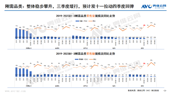 來自奧維云網推總數據顯示,2023年前三季度,廚衛大家電合計零售額規模1161億元,同比增長3.4%。其中,剛需廚電(煙灶+電燃)累計零售額691億元,同比增長3.9%。